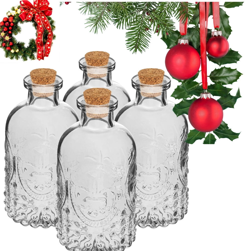 Weihnachts Geschenkflaschen 240 ml – 4 × Glasflaschen mit Naturkorken