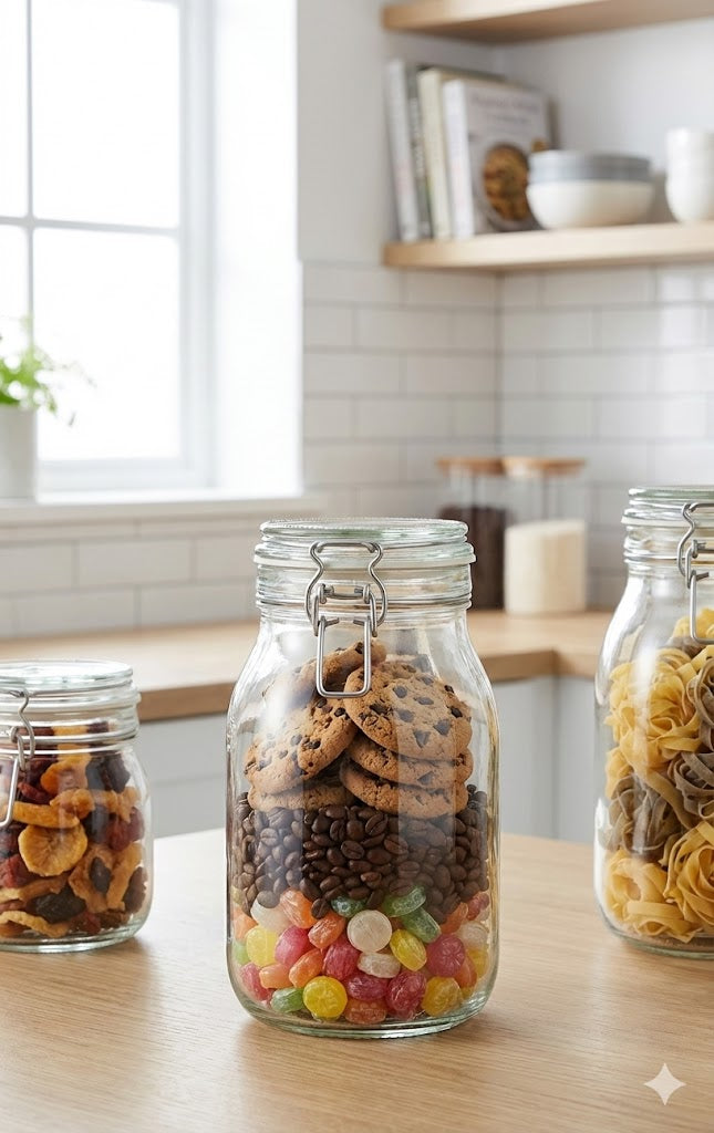 • Luftdicht & auslaufsicher dank starker Gummidichtung Das Glas schließt hermetisch ab und schützt den Inhalt zuverlässig vor Feuchtigkeit, Gerüchen und Schädlingen.