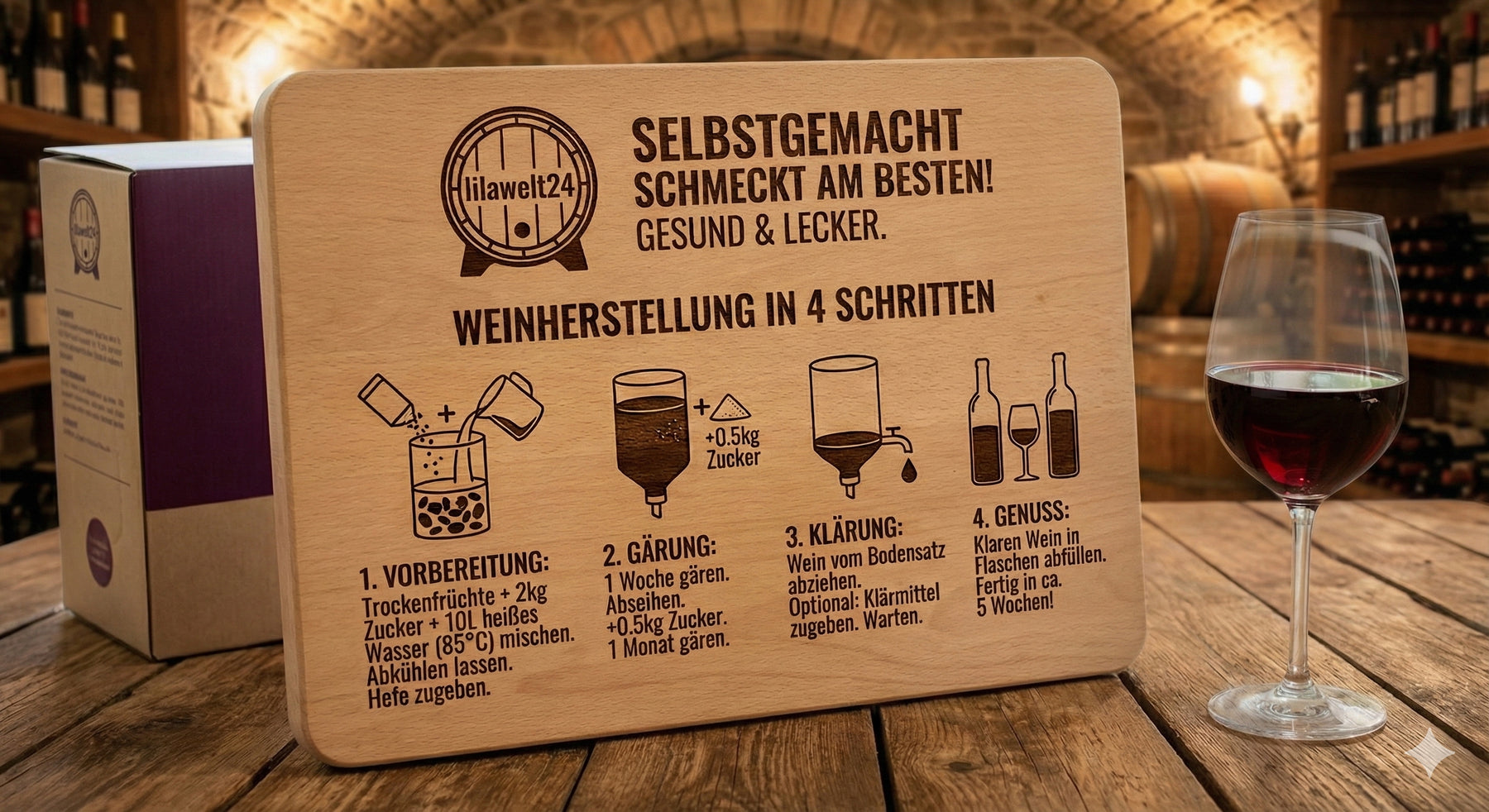 Weinset 4 Jahreszeiten mit Himbeere -Fruchtmischung & Weinhefe mit Nährsalz